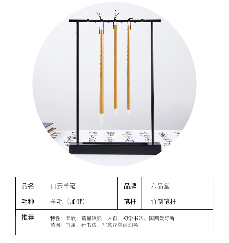 【六品堂mb 00311】六品堂書道のペンは大きい白雲の中の楷書の学生書道の国画専用の初心者入門書道のペンを三本詰めて行書の小さい白雲書道の筆を書いています。