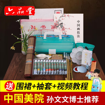 六品堂国画工具セット水墨画工画筆中国画書道初心者入門国画朱肉セット24色12色18色国画材料工具箱基本版18点セット【道具箱あり】(エプロン+袖套)国画朱肉12色12 ml【写真価格ブランド見積】-
