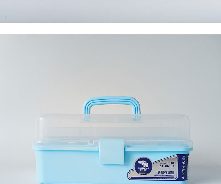 新しいアート筆箱デッサンツール専用筆箱学生大容量二階三階絵画専用収納二階建て透明スカイブルー