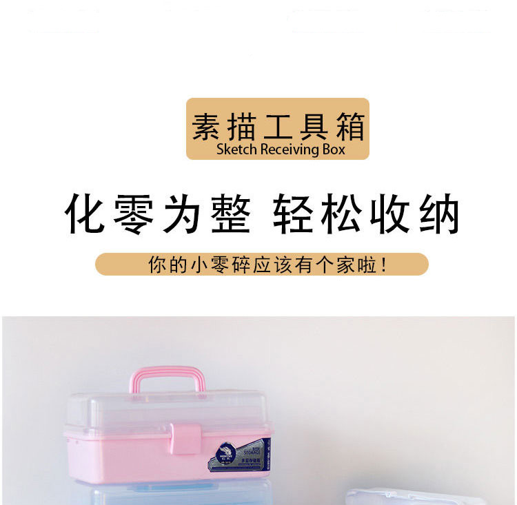 新品の美術筆箱デッサン工具専用筆箱学生大容量二階三階絵画専用収納二階建て透明スカイブルー