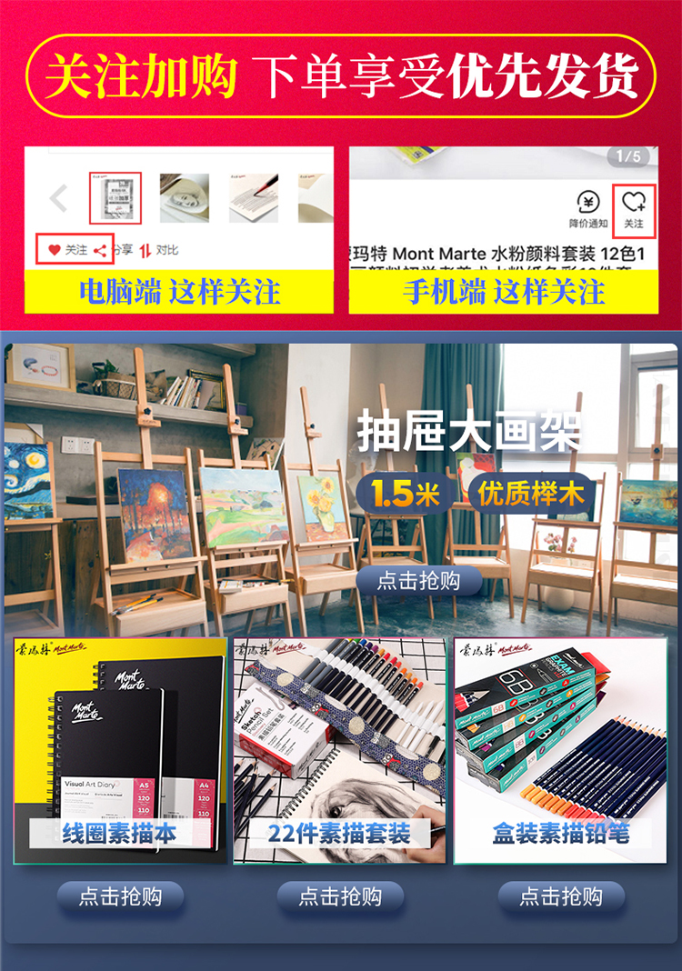 モンマルト(Mont Mate)デッサンペーパー・ペン7本の美術専門の画用紙・紙・すり絵を描く学生は、ペンの大きさの中のトランペット用のペン拭きセットMAX 0011を引き裂くことができます。