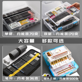 大容量デッサン筆箱鉛筆美術生収納ケース工具二層用品文具絵画透明簡約画コンテプラスチック芸術生多機能画筆芸試験全国五倉出荷(上海、南京、天津、武漢、成都)この項【写真価格ブランド見積】-