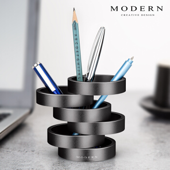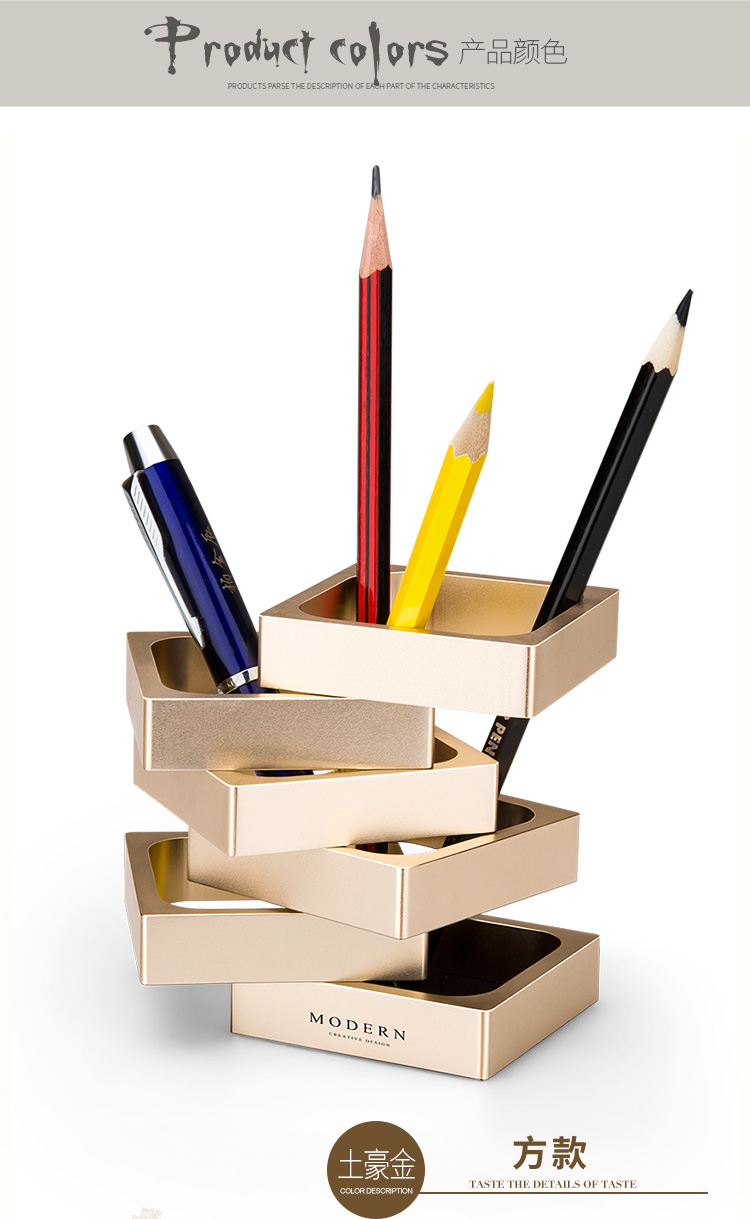 MODERNアルミニウム合金大容量筆筒創意高級多変造形金属筆筒ファッションオフィススイングデスクトップ筆架ビジネス企業カスタマイズギフト四角い銀色