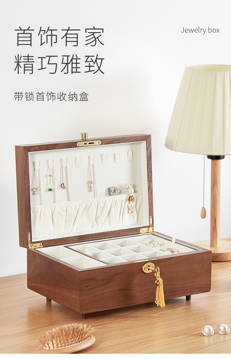 初心(CHOSIN)胡桃木イヤリングピアスネックレス収納ケースアクセサリーケースロック時計収納大容量整理ケースバレンタインプレゼント胡桃木ロックアクセサリーケース【写真価格ブランド見積】-