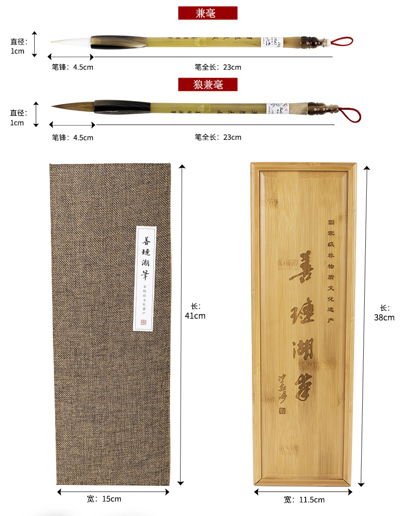 Touch Fish书道笔礼盒套装文房四宝善璉湖笔牛角羊角兼毫狼毫书道练字高级赠送狼兼毫单支装礼盒