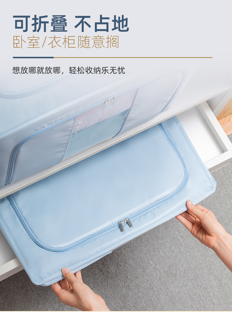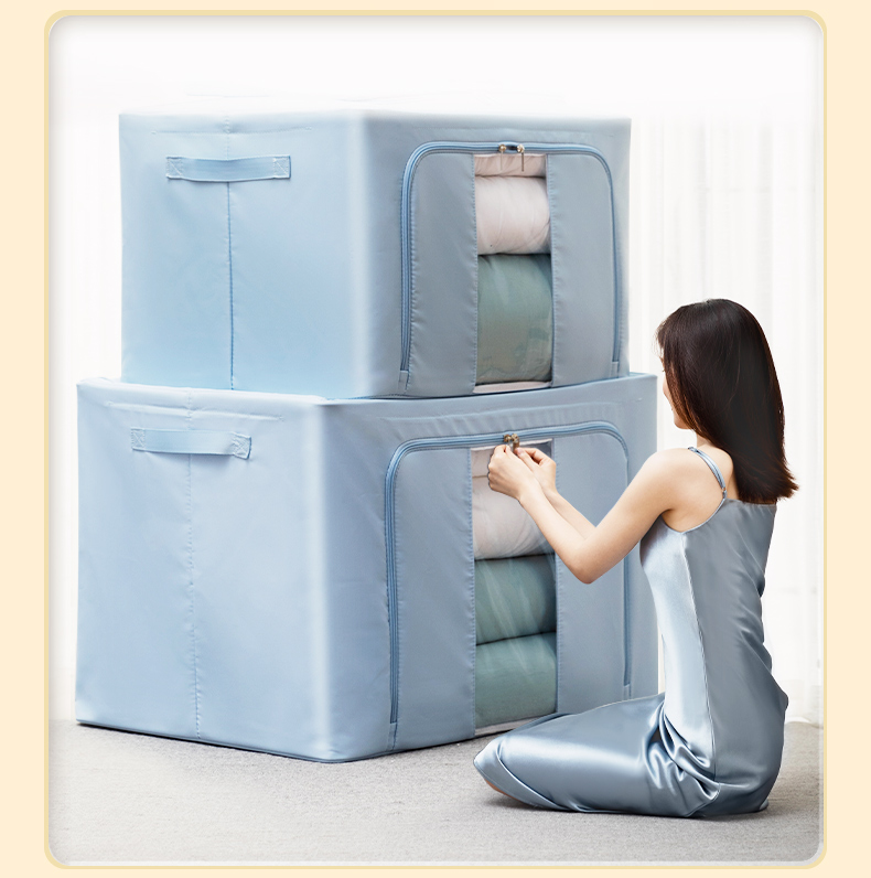 太力布艺收纳箱 衣服棉被子整理箱折叠储物箱被子衣柜钢架箱收纳盒66L单个装宝石蓝